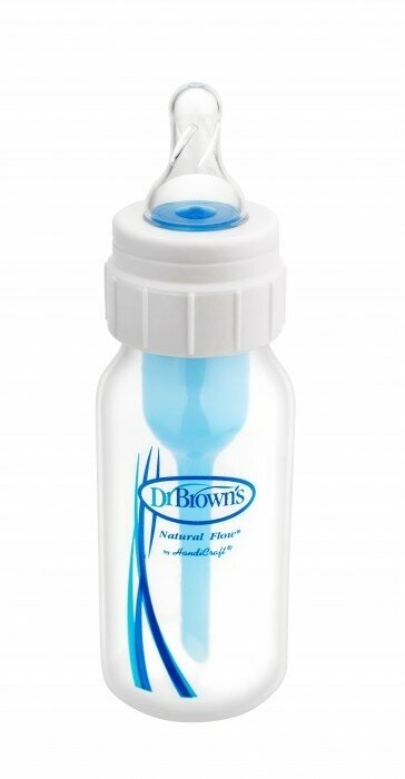 Бутылочка Dr.Brown's для детей с выявленными трудностями процесса кормления 120мл разработана специально для обеспечения помощи в сложных случаях при кормлении через рот. Особенности: Обеспечивает функцию кормления cамим новорождённым Положительный опыт кормления из бутылочки: эффективный, успешный, безопасный Помогает уменьшить колики и срыгивания Нет необходимости постоянно сжимать или надавливать на бутылочку для вывода необходимого количества жидкости в рот ребёнка Нет необходимости использовать рото-лицевые манипуляции, такие как поддержка подбородка и щеки для увеличения давления в ротовой полости Система кормления Dr. Brown's разработана для новорождённых и детей, кормящихся при помощи бутылочки с выявленными трудностями процесса кормления: врождённая расщелина верхней губы/нёба, врождённый порок сердца, оронейромоторная дисфункция, черепно - лицевые изменения, общие или редкие синдромные последовательности (синдромы Пьера - Робена и Стриклера).
