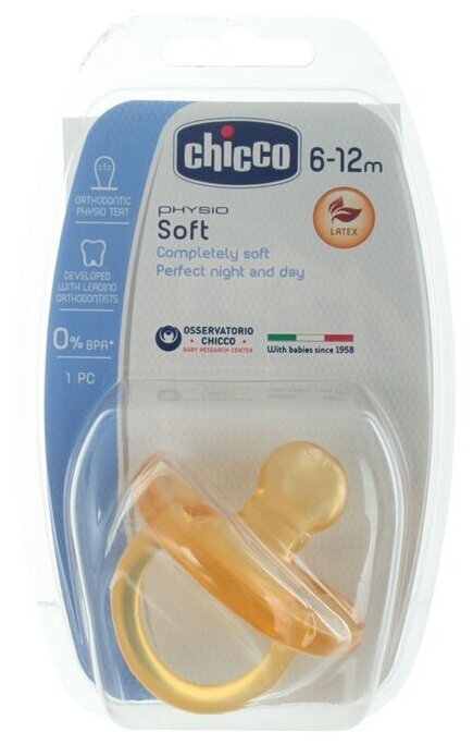 Пустышка Chicco Physio Soft натуральная латексная 6-12 мес. 1 шт. (310410138)