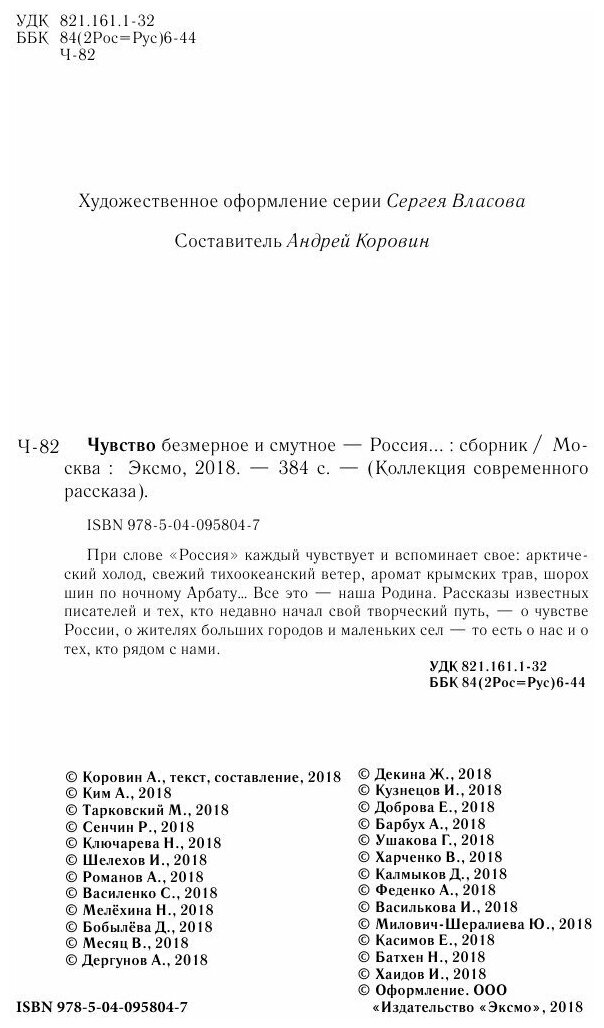 При слове "Россия" каждый чувствует и вспоминает свое: арктический холод, свежий тихоокеанский ветер, аромат крымских трав, шорох шин по ночному Арбату… Все это - наша Родина. Рассказы известных писателей и тех, кто недавно начал свой творческий путь, - о чувстве России, о жителях больших городов и маленьких сел - то есть о нас и о тех, кто рядом с нами.