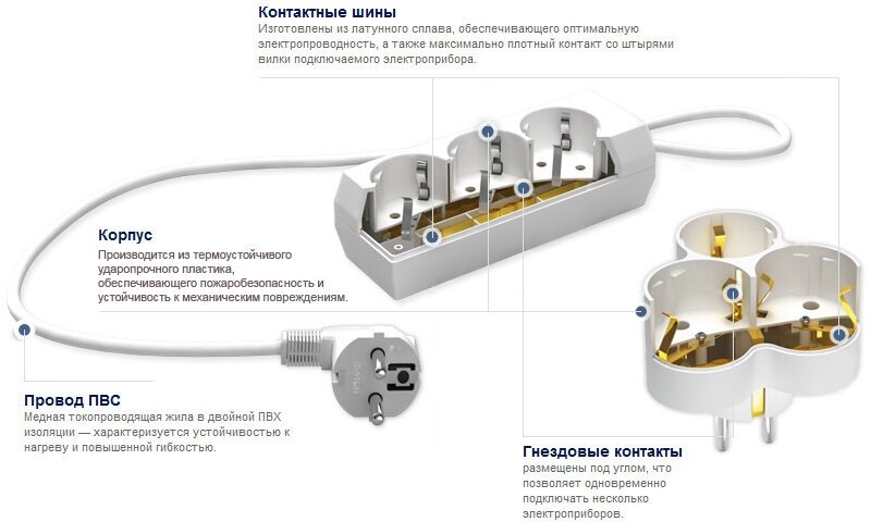 ? Электротехническое устройство, предназначенное для подключения нескольких электроприборов большой мощности к одной розетке евростандарта.