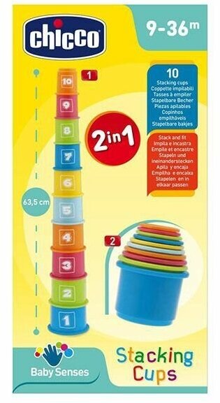 Постройте высокую башню, начиная с самого большого элемента и заканчивая самым маленьким. На разноцветных стаканчиках изображены цифры от 1 до 10. В процессе увлекательной игры малыш выучит названия цифр и научится считать до 10.
