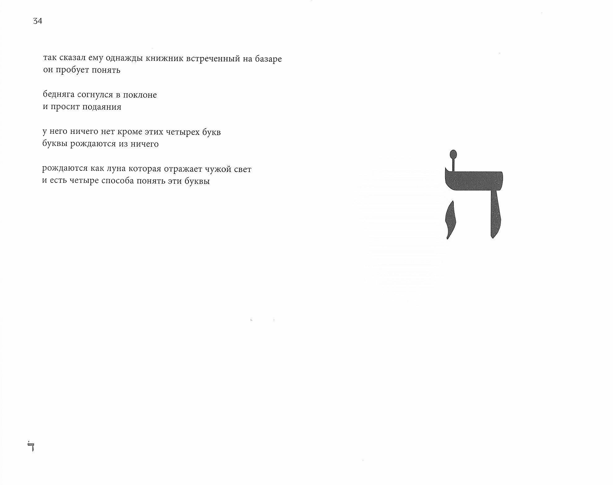 Книга представляет собой крайне любопытный литературный эксперимент в виде попытки высвобождения внутреннего смыслового и духовного содержания каждой из букв еврейского алфавита в верлибрической стихотворной форме. Каждому стиху предшествует сама еврейская буква, именем которой названо само стихотворение в русском произношении. Качественная типография и переплёт, твёрдая обложка.