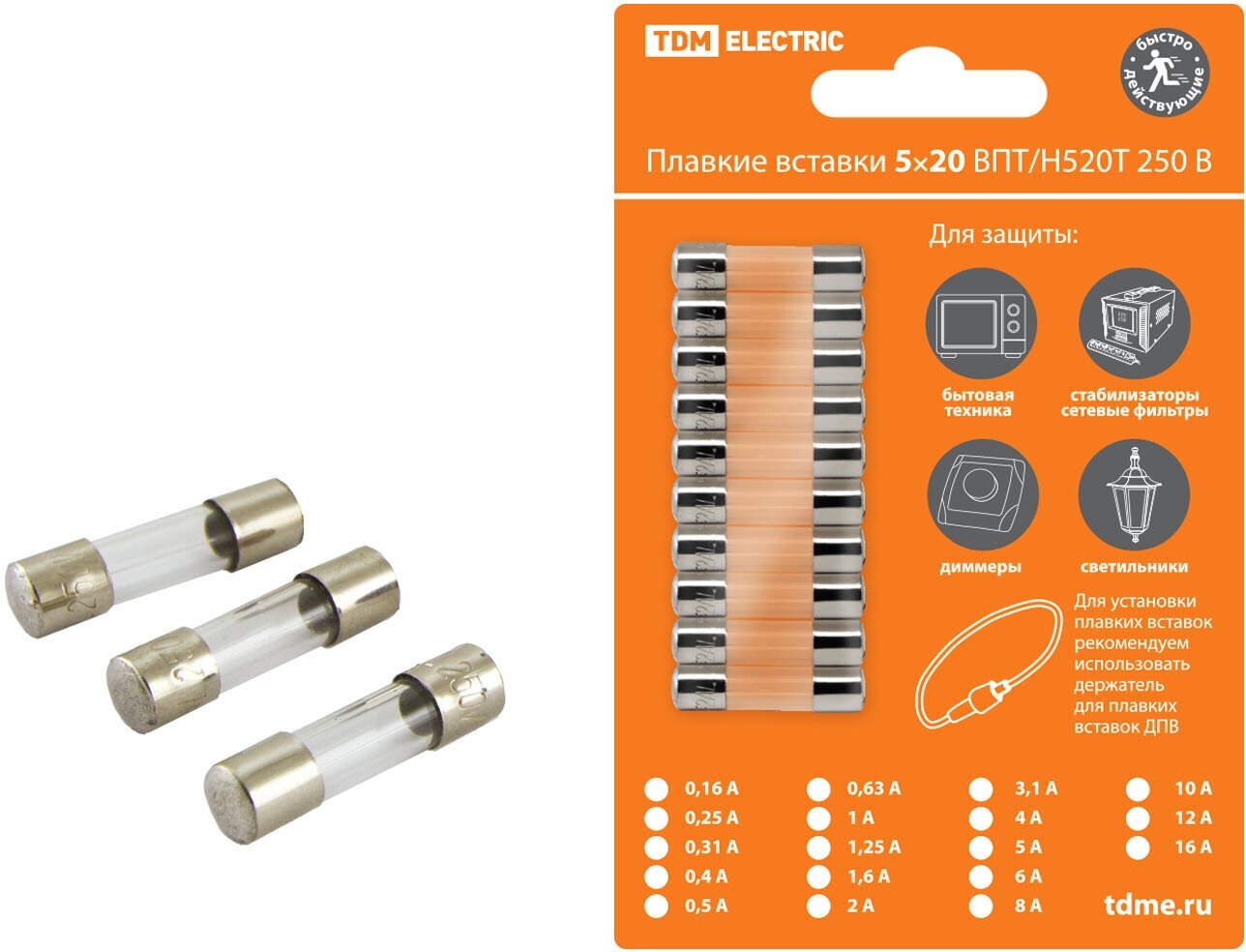 Плавкая вставка TDM ВПТ6-11 3,15А 250В упак 10 шт. предназначена для защиты кабельных линий от перегрузок и коротких замыканий. Контактная группа предохранителя выполнена из никелированной электротехнической меди.Тип срабатывания - замедленный.