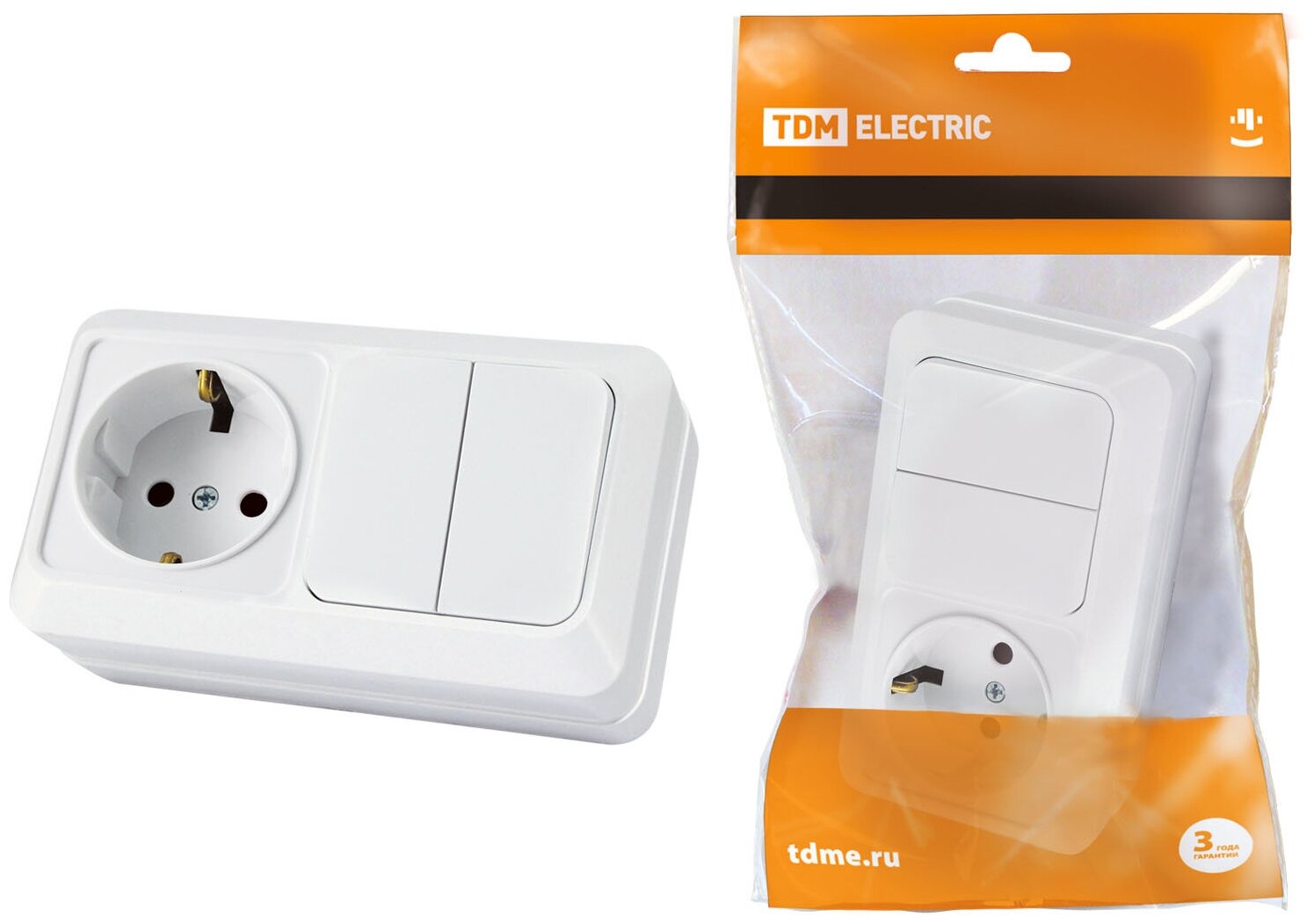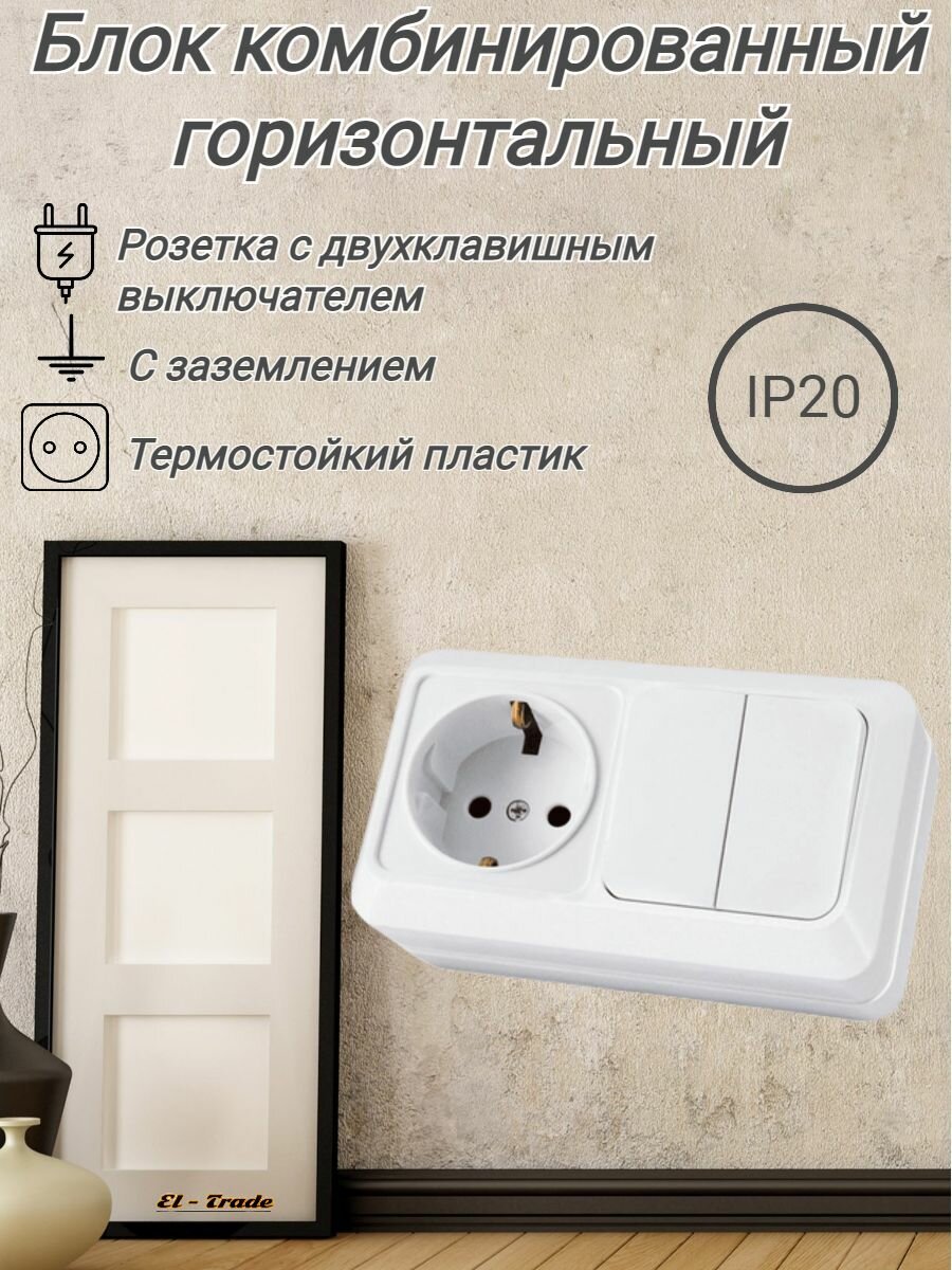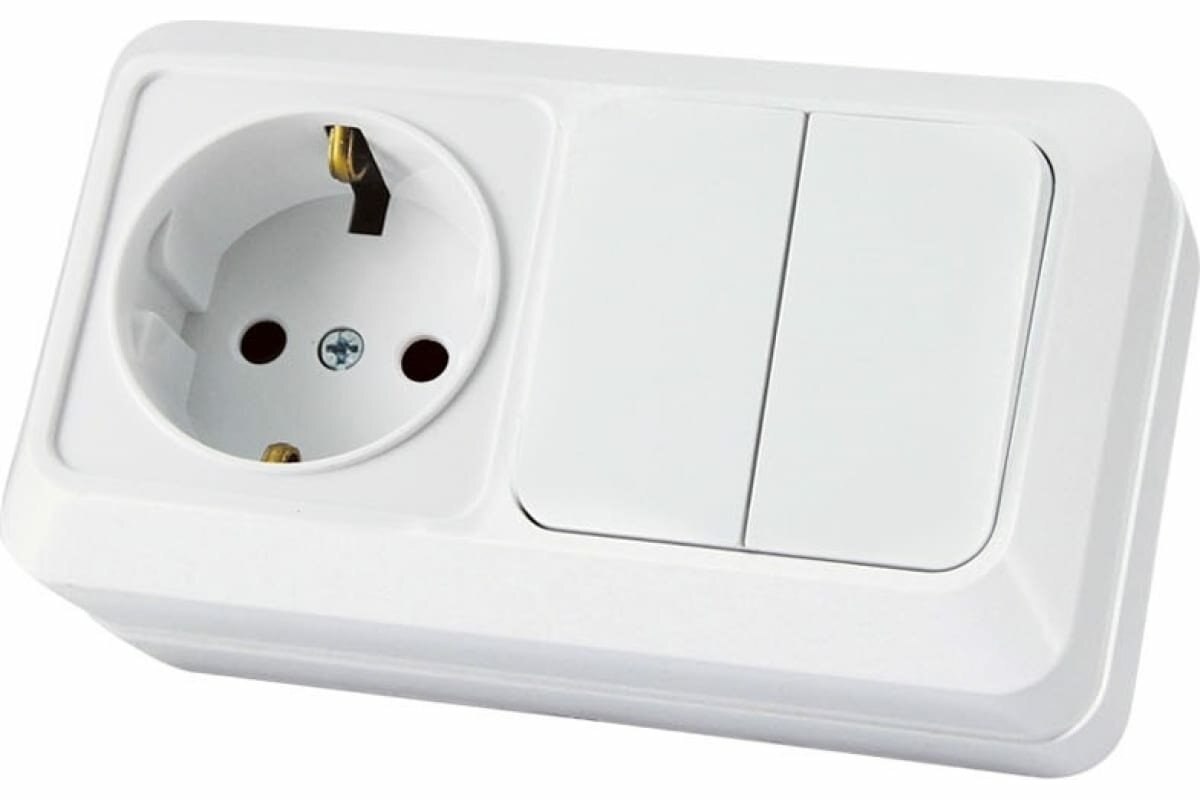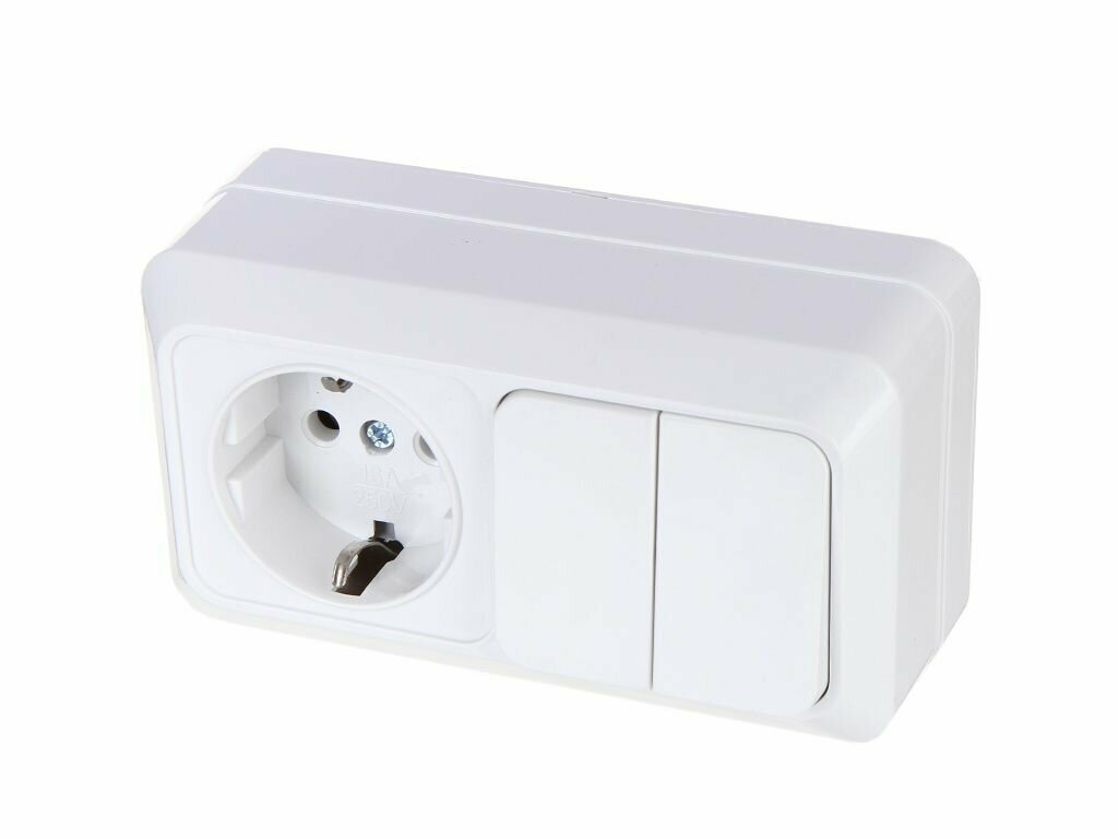 Безопасный блок розетка и выключатель SQ1801-0104, представляет собой электроустановочное изделие группы «Ладога».