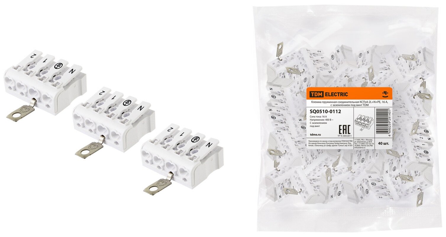 Пружинная соединительная клемма TDM КСПз4-2l+n+pe