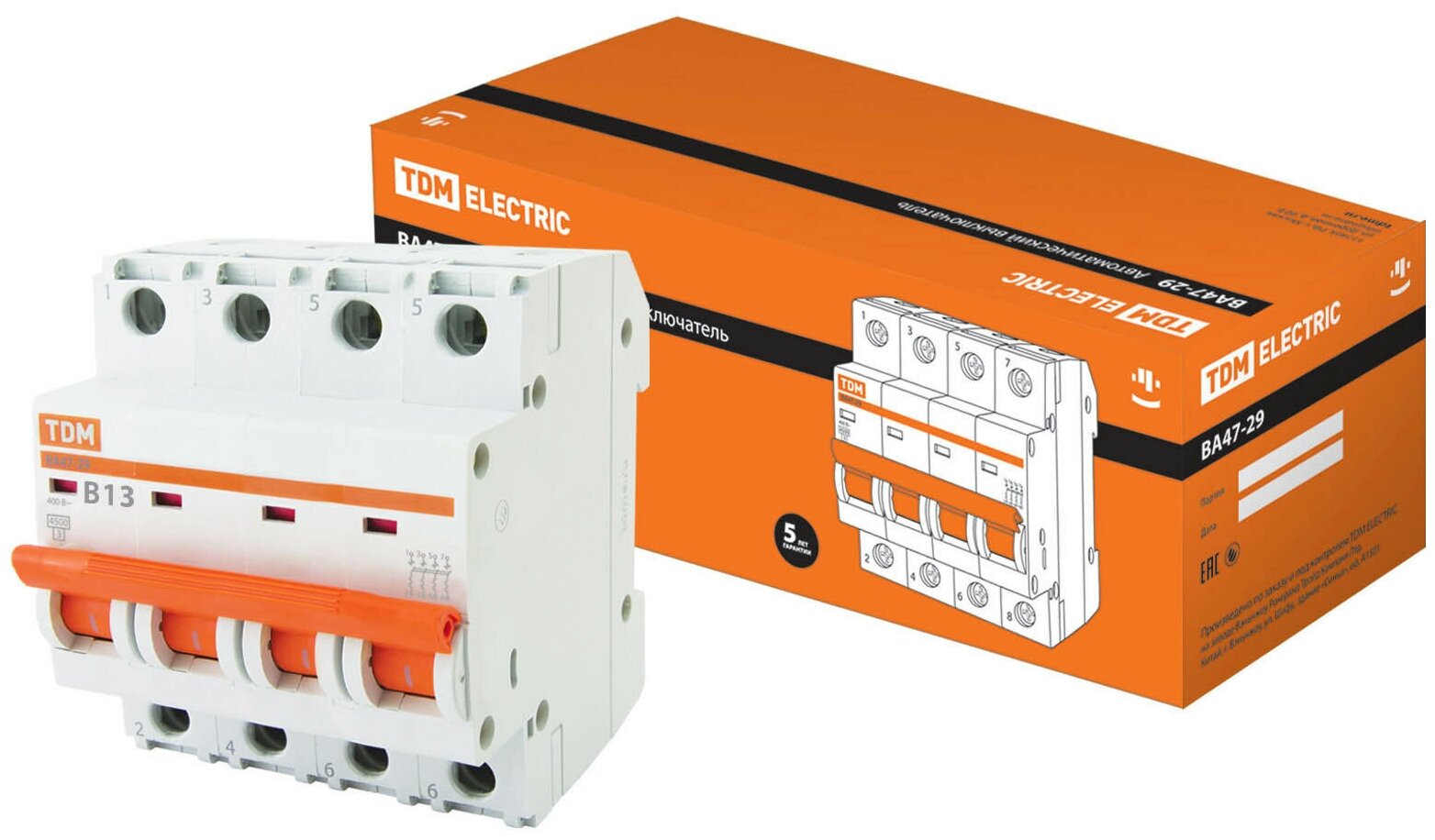 Назначение: Оперативное включение и выключение электрических цепей. Проведение тока в нормальном режиме. Отключение тока при протекании токов утечки на землю.Применение: Вводно-распределительные устройства для жилых и общественных зданий.Приемущества: На лицевой панели реализован механический индикатор положения контактов (включено/отключено),Наличие двойного одновременного подключения. Шина и проводник значительно расширяет диапазон возможных схемных решений.Геометрия боковых поверхностей изделия разработана для улучшения теплового режима работы.Возможность пломбирования для защиты от несанкционированного доступа (заглушка поставляется отдельно).Ширина модуля 17,5 мм.Материалы: Корпус и детали аппарата выполнены из пластика, не поддерживающего горение.Упаковка: Групповая упаковка ВА47- 29 1Р по 12 шт. ВА47-29 2Р по 6 шт. ВА47-29 3Р по 4 шт. ВА47-29 4Р по 3 шт.Руководство по эксплуатации - 1 шт. на групповую упаковку Паспорт - 1 шт. на групповую упаковку