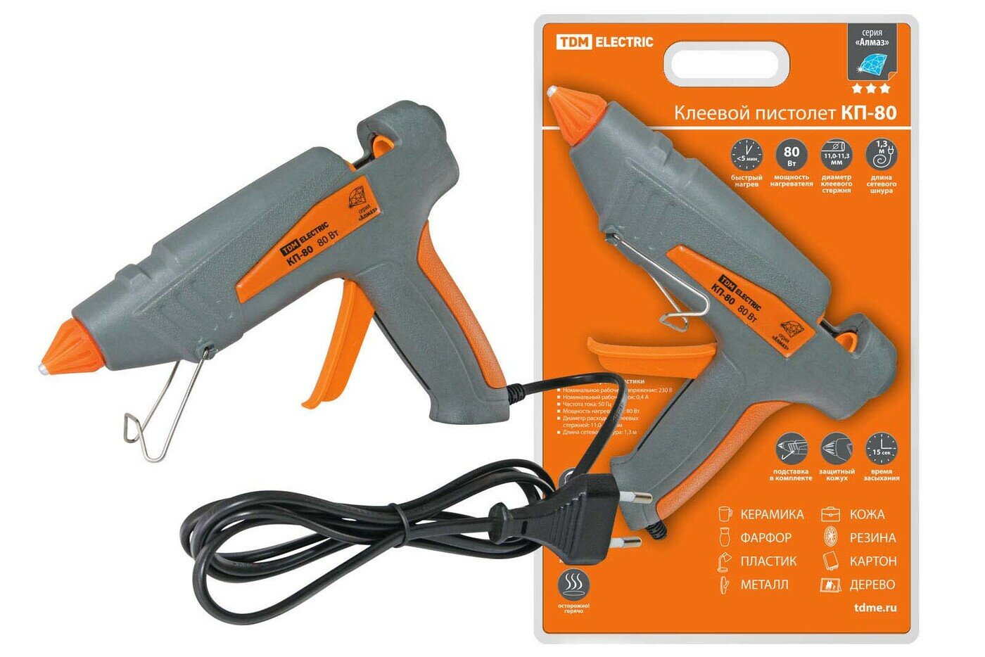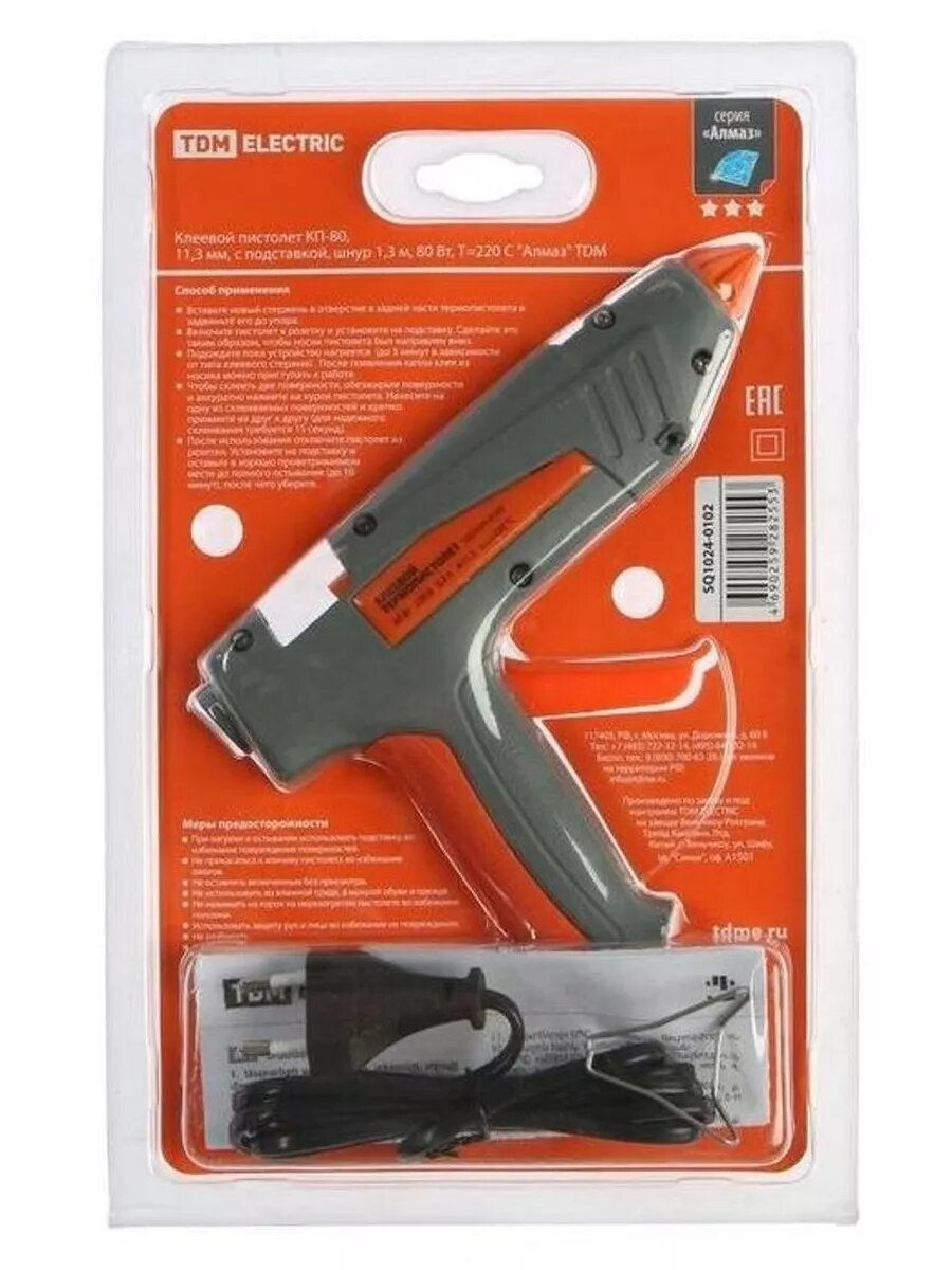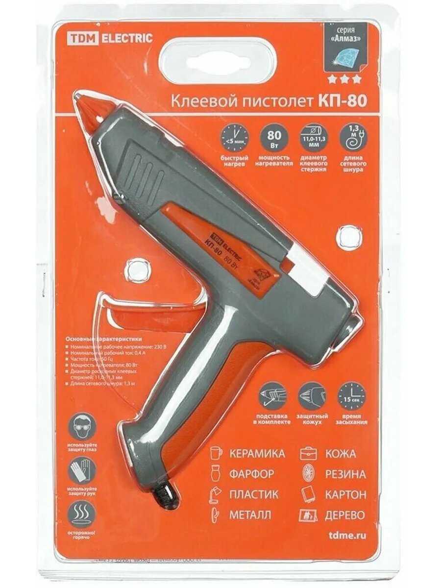 Клеевой пистолет TDM Electric КП-80 предназначен для склеивания широкого спектра материалов, герметизации швов и закрепления элементов печатных плат.