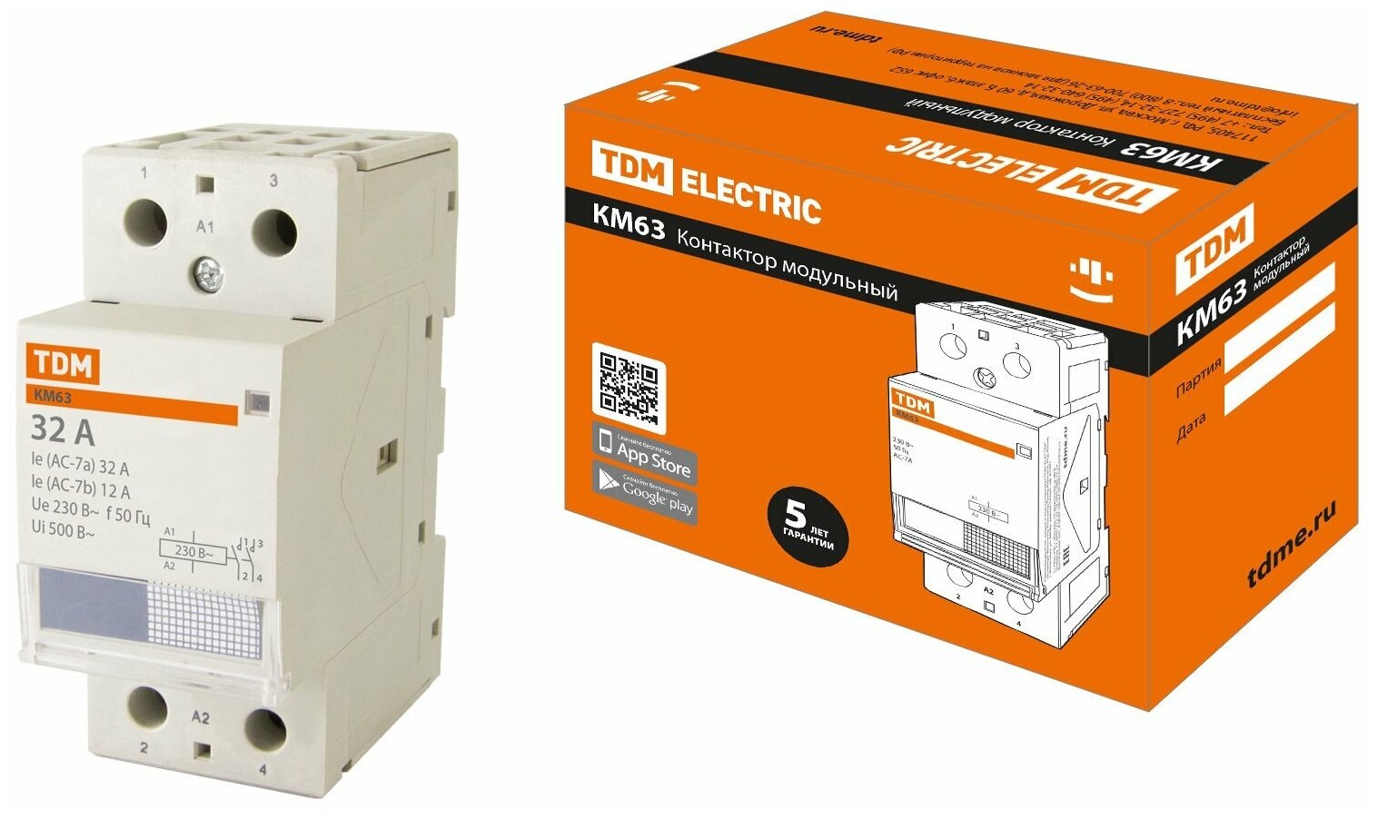Назначение:Используются для автоматизации и управления различных технологических процессов, в том числе в системах освещения, кондиционирования, вентиляции и т. д.Применение:Автоматика инженерного оборудования: зданий, насосов, систем вентиляции, отопления, освещения и т. д.Преимущества:Защелка на DIN-рейку с фиксацией упрощает монтаж и демонтаж аппарата.На лицевой панели реализован механический индикатор положения контактов (включено/отключено),Совместимость размеров позволяет установить контактор в стандартный щиток с любыми аппаратами модульной серии.Конструкция:Мостиковые контакты обеспечивают высокие электроизоляционные свойства и хорошее гашение дуги при коммутации.Это повышает их износоустойчивость, увеличивает срок службы, уменьшает переходное сопротивление и тепловые потери.Материалы:Корпус и детали аппарата выполнены из пластика, не поддерживающего горение.Упаковка:Руководство по эксплуатации - 1 шт. на групповую упаковку Паспорт - 1 шт. на групповую упаковкуКМ63/2-20 по 12 шт.КМ63/2-25 по 12 шт.КМ63/2-32 по 6 шт.КМ63/2-40 по 6 шт.КМ63/2-63 по 6 шт.КМ63/4-20 по 6 шт.КМ63/4-25 по 6 шт.КМ63/4-32 по 4 шт.КМ63/4-40 по 4 шт.КМ63/4-63 по 4 шт.