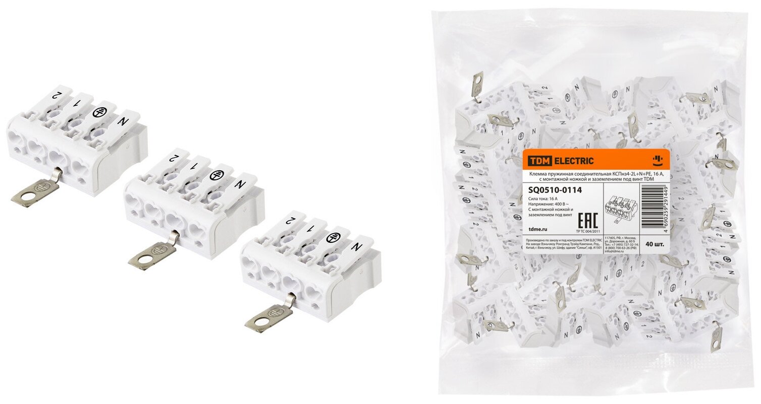 Пружинная соединительная клемма TDM КСПнз4-2l+n+pe