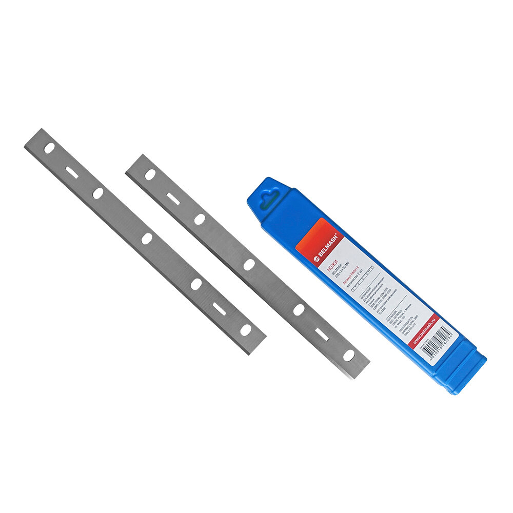 Комплект ножей строгальных BELMASH 230×2×20 из 2 штук предназначен для многофункциональных деревообрабатывающих станков БЕЛМАШ СДМ-2000, SDM-2000M, СДМП-2200 и рейсмусового устройства TD-2200. Каждое лезвие крепится к строгальному валу с помощью 5 винтов.