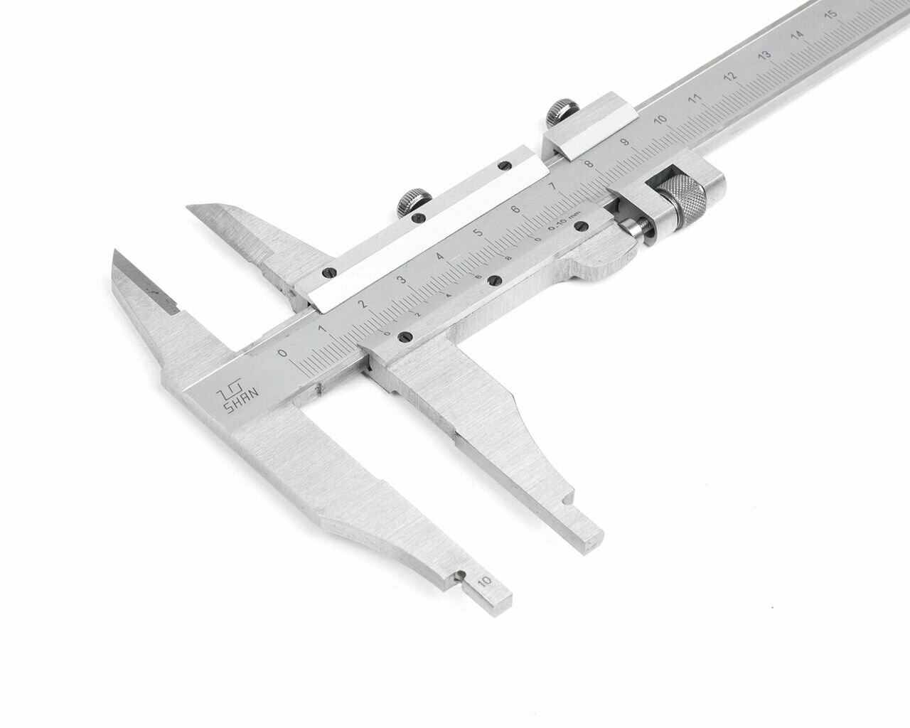 Штангенциркуль ШЦ-2- 250 0,1 Shan - это точный инструмент, с помощью которого производятся измерения внутренних и внешних размеров деталей. Благодаря строению губок и наличию рамки микрометрической передачи с помощью прибора можно наносить разметку на поверхности деталей. Губки фиксируются специальным винтом. Снятие показаний происходит по шкале штанги, где считывают целые части, и нониусу, где считывают доли миллиметра. Далее необходимо сложить эти два параметра для получения точного результата.