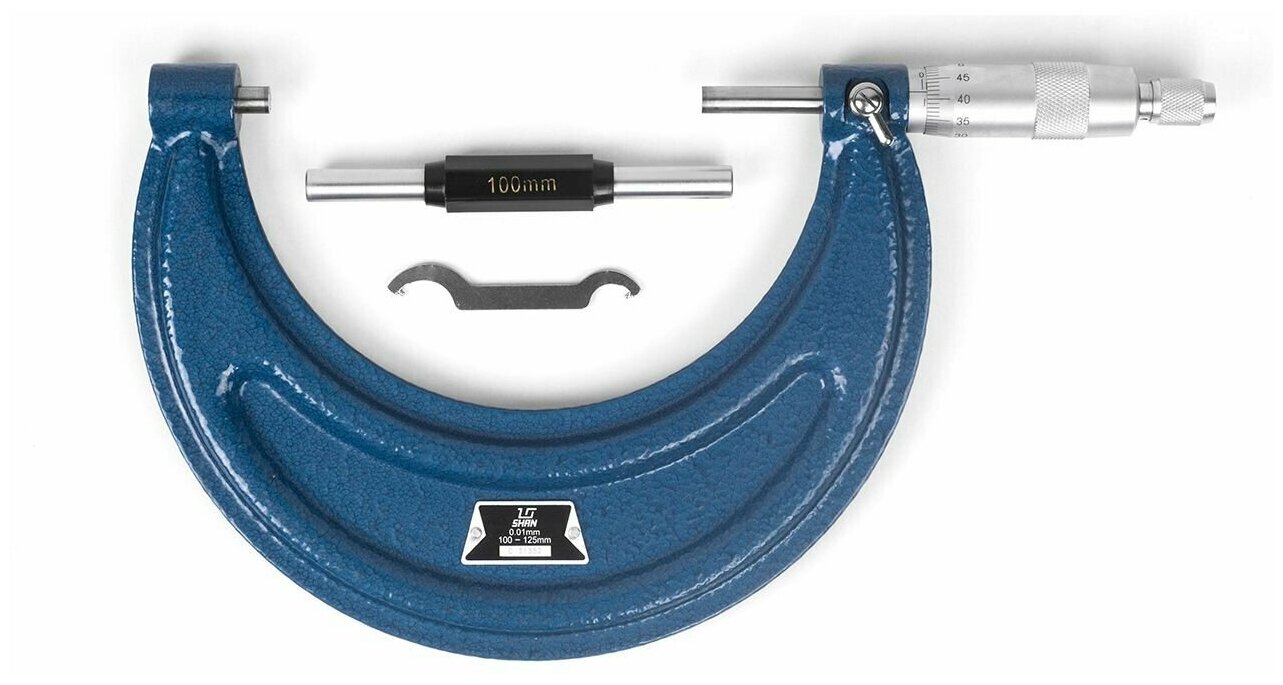 Микрометр МК-125 0.01 SHAN- измерительный прибор для высокоточного (с погрешностью от 2 до 50 мкм) определения линейного размера. Использование микрометра возможно в любой производственной области, где требуется определение размеров детали – механическая обработка, точная сборка, настройка оборудования и др. Конструкция микрометра состоит из трех основных элементов: Рамы в виде полукруга для фиксации измеряемой детали; Ручки с трещоткой и неподвижным стеблем со шкалой и измерительным барабаном; Винта с неподвижной гайкой для измерения величинЗамер с помощью микрометра выполняется посредством перемещения винта в неподвижной гайке. Цифровые микрометры (МКЦ) оснащенные электронным измерительным устройством, пользуются популярностью благодаря удобству и точностью измерения, а также дополнительными возможностями инструмента: Возможность производить замер с точностью до 1 мкм (с погрешностью до 0,1 мкм); Встроенная калибровка; Цифровое табло для быстрого и точного получения результата; Переключение между метрической и дюймовой системами;