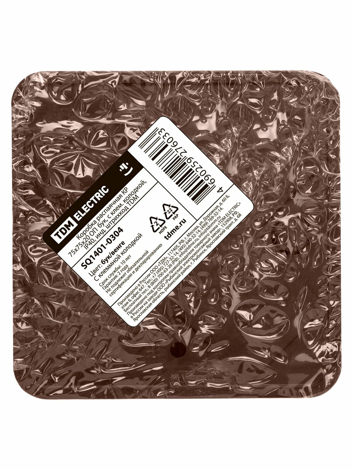 Коробка распаячная размером 75х75х20 мм производства компании TDM необходима для скрытого монтажа в стенах из кирпича и бетона, хорошо оберегает связку проводов от пыли, влажности и повреждения. Состоит из корпуса и крышки, которая крепится на винтах для более быстрого доступа к проводке. Объекты, на которых используется изделие: жилые помещения, объекты коммерческой недвижимости, общественные помещения, инфраструктурные объекты. Коробка TDM изготовлена из качественного материала - пластик.Основные характеристики:Степень защиты - IP40.Тип установки - открытая установка.Количество выходов - 4.Способ монтажа - винтовое.Количество клеммных блоков - 6.Цвет - дерево.Рабочие температуры - -25 .+50 °C.