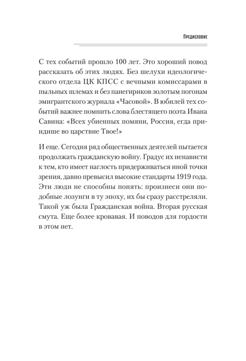Одна из тех отвратительных книг,которые никогда и ни кому не посоветую.Автор бессовестный человек,получивший образование за счет ссоветского государства и теперь очевидно тоскующий по рабству,оправдывающий белогвардейскую сволочь и констатирующий факты установки памятников генералам-убийцам не далеко ушел от подонков бандеровцев!