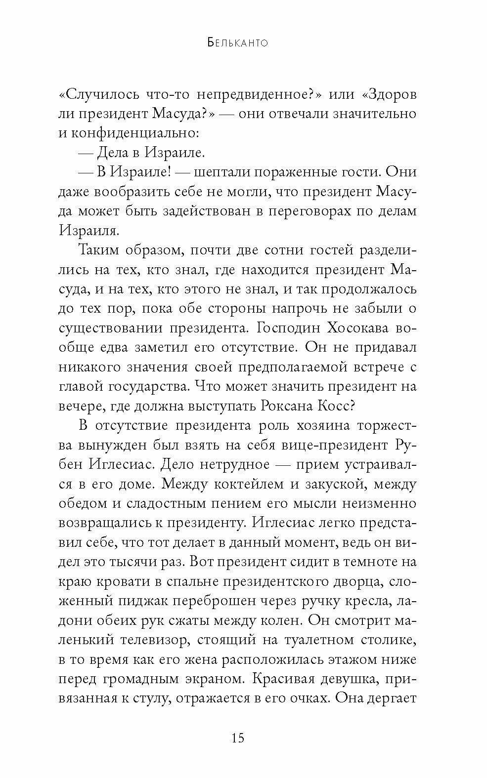 Роман "Бельканто" был переведен на 30 языков и разошелся в мире тиражом более миллиона экземпляров.