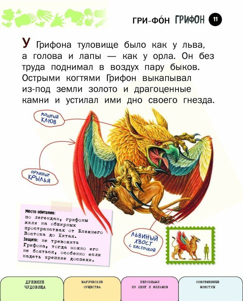 Еще понравилось то, что это все-таки энциклопедия – с четкой структурой, доступной и полезной информацией. И монстры подобраны не только общеизвестные, типа Змея Горыныча, а собраны со всего мира. Так что взрослые тоже узнают много нового. -