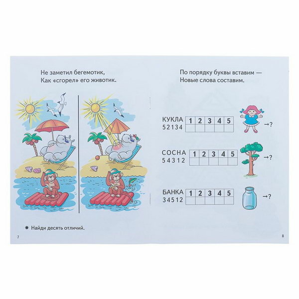 Разнообразные задания написаны в рифму. Тут и лабиринты, и поиск предметов, и математические ребусы, и поиск отличий.