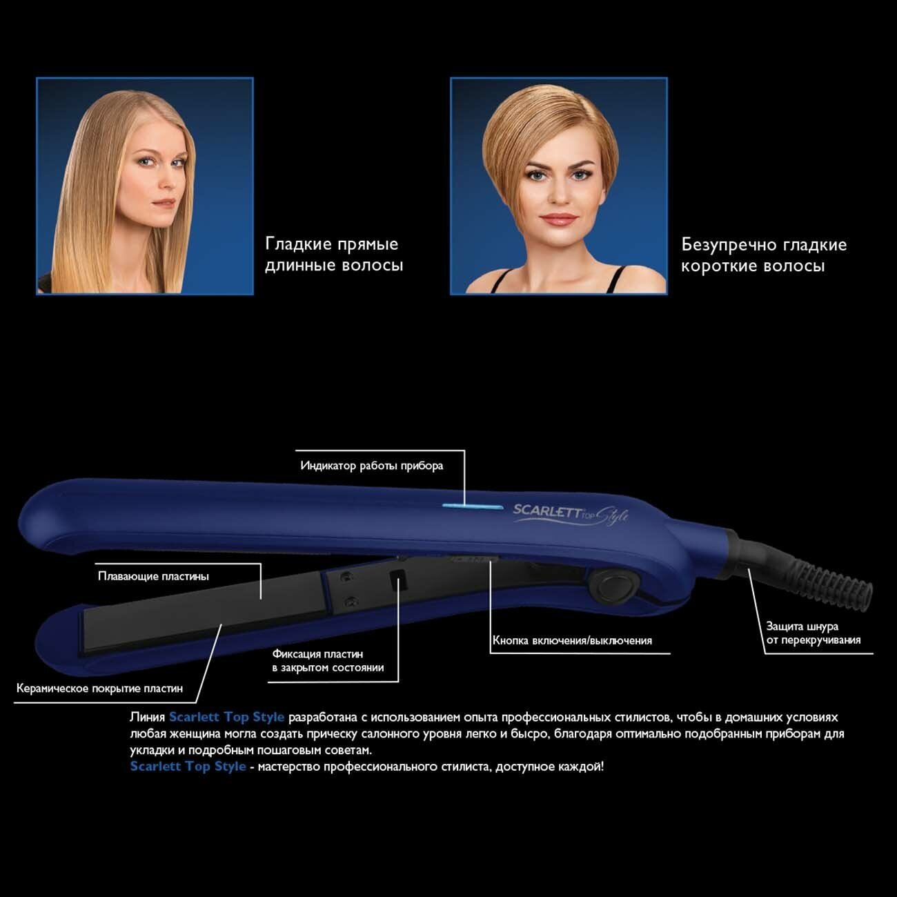 Красивые волосы с элегантной укладкой — заветная мечта каждой женщины. Воплотить ее вам помогут выпрямитель для волос Scarlett . Бытовые щипцы для выпрямления волос — это лучшая альтернатива походам в салон красоты. Удобные и практичные щипцы помогут вам создать множество удивительных причесок, практически ни чем не отличающихся от профессиональных салонных укладок и завивки. В принципе, в домашних условиях можно сделать все что угодно, было бы желание.