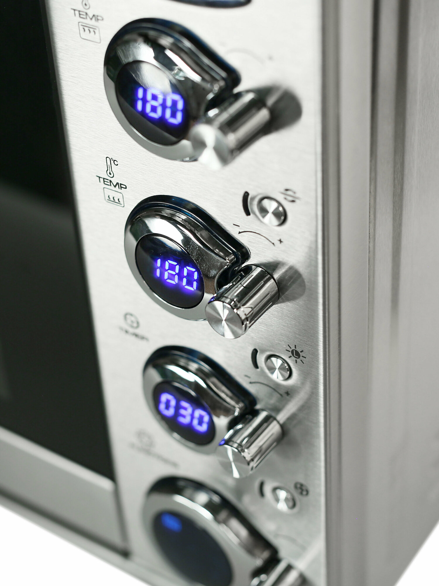 Конвекционная мини-печь Gemlux предназначена для запекания мяса и овощей, выпечки хлеба и пиццы. Модель роторным грилем, независимой регулировкой температуры верхнего и нижнего ТЭНов, таймером (120 мин.) и подсветкой. Корпус выполнен из нержавеющей стали, дверца - из огнеупорного стекла. 4 ассиметричных ручки управления с ЖК-дисплеями, на которых отображаются текущие значения: режим работы, температура верхнего и нижнего нагревательного элемента и время приготовления. 9 режимов работы: верхний и нижний нагрев, нижний нагрев, верхний нагрев, ферментация, размораживание, запекание цыпленка, приготовление пиццы, приготовление тостов, пользовательский режим. Внутренний размер камеры: 350х360х290 мм. Длина сетевого шнура: 0,9 м.