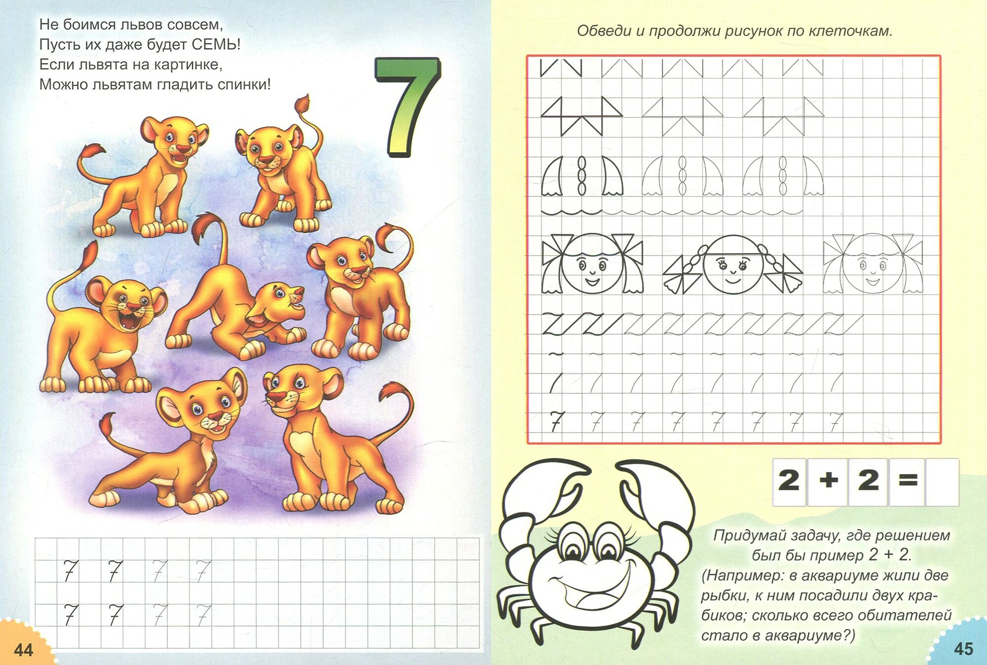 что, непосредственно, расширяет кругозор ребенка. Занимаясь по этой книге, можно не только научиться считать, но и весело провести время (порисовать, выучить стихи, найти спрятавшиеся цифры).