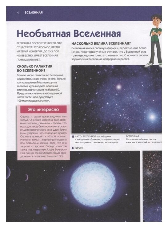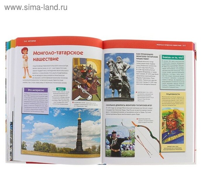 Ваш ребёнок растёт, и ему хочется узнать больше о том, как устроен мир вокруг него, какие растения и животные существуют на нашей планете, как работает его тело, что происходило в древности на Земле и что ждёт её в будущем. Листая страницы нашей энциклопедии, он сможет совершить путешествие по всему земному шару: от Северного полюса до тропических джунглей и морских глубин, узнать, как живут люди в других странах, кто и как изобрёл телескоп и телефон, автомобиль и самолёт, чем прославились великие полководцы и люди искусства. В нашей энциклопедии в краткой и увлекательной форме даны ответы на многие интересующие вашего ребёнка вопросы, а красочные иллюстрации сделают чтение ещё более увлекательным!