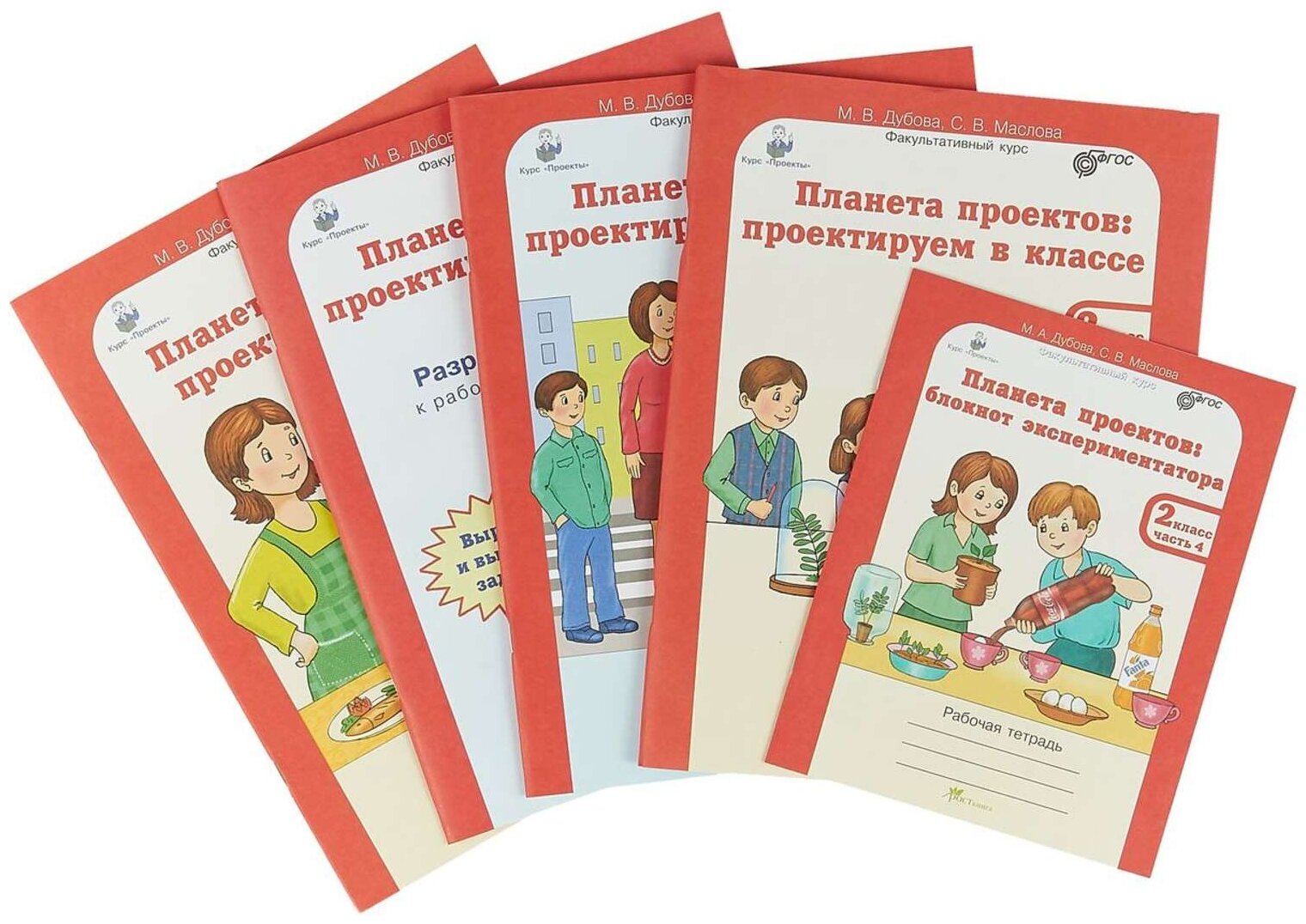 Курс "Проекты" "Планета проектов. 2кл. Р/т в 4-х ч. + разрезной материал . Проектируем в классе 2 части. Проектирум дома 1 часть. Блокнот экспериментатора 1 часть. Термоупаковка.