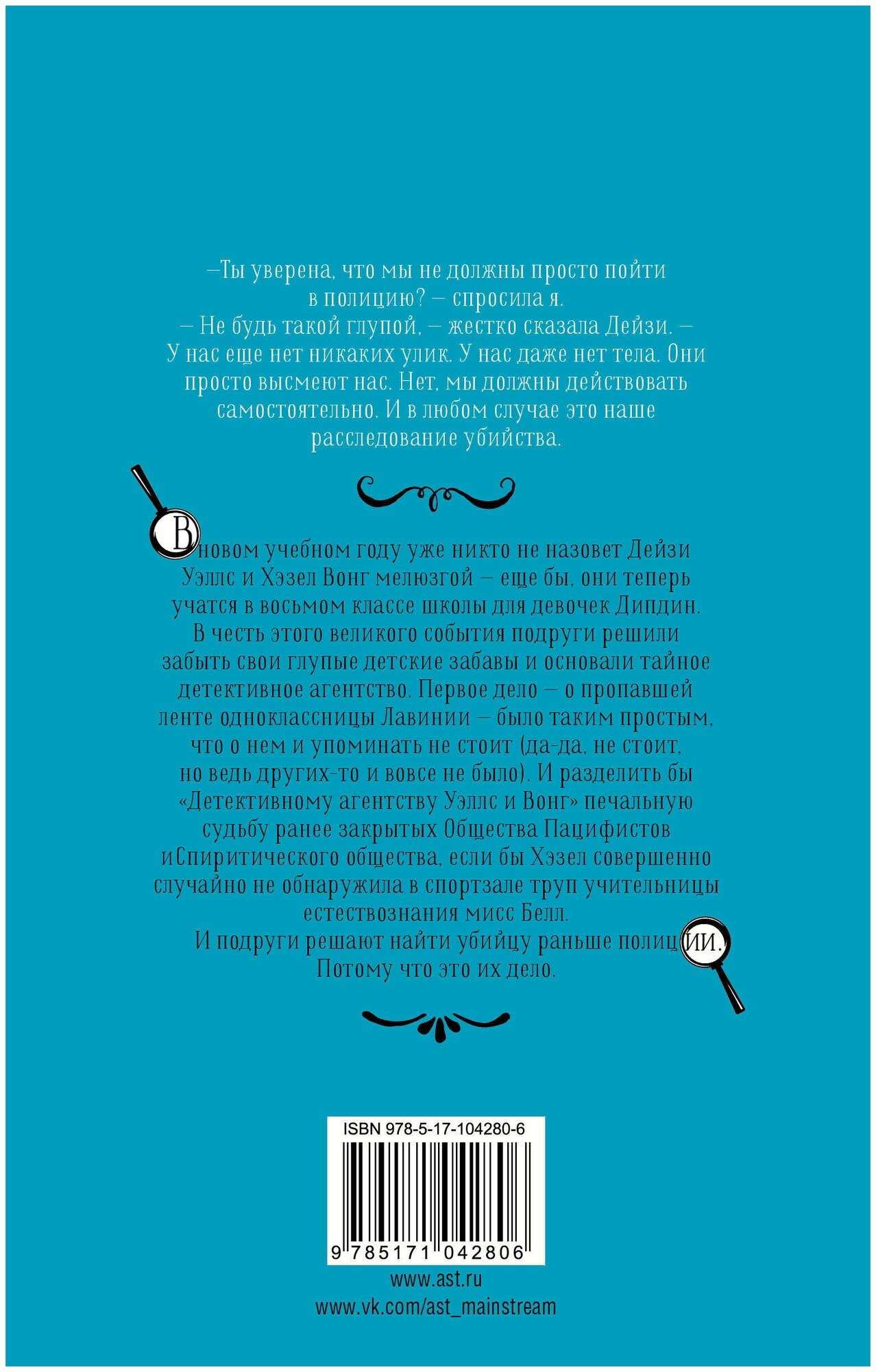 В новом учебном году уже никто не назовет Дейзи Уэллс и Хэзел Вонг мелюзгой - еще бы, они теперь учатся в восьмом классе школы для девочек Дипдин. В честь этого великого события подруги решили забыть свои глупые детские забавы и основали тайное детективное агентство. Первое дело - о пропавшей ленте одноклассницы Лавинии - было таким простым, что о нем и упоминать не стоит (да-да, не стоит, но ведь других-то и вовсе не было). И разделить бы "Детективному агентству Уэллс и Вонг" печальную судьбу ранее закрытых Общества Пацифистов и Спиритического общества, если бы Хэзел совершенно случайно не обнаружила в спортзале труп учительницы естествознания мисс Белл.