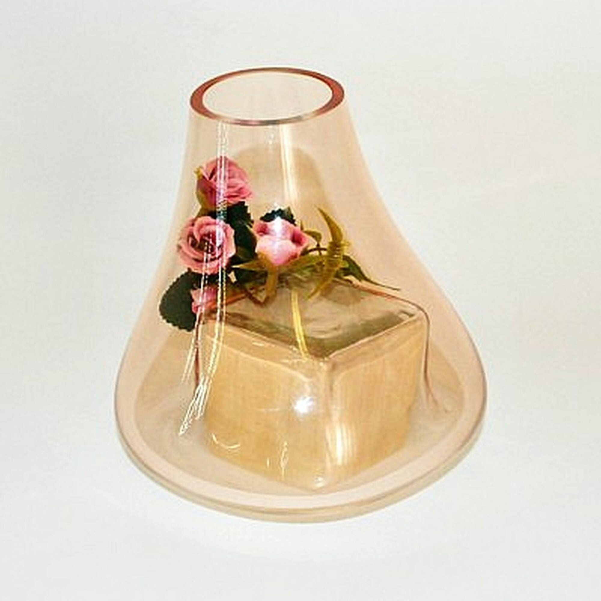 Эффектная ваза на кубе станет отличным элементом декора для украшения интерьера в стиле хай-тек, модерн или ар-деко. Ваза сделана из толстого стекла в персиковом цвете. Такая ваза придаст романтическое настроение в домашней обстановке. Стильная стеклянная ваза отлично подойдет для букетов из сухостоя, а также прекрасно будет смотреться со свежесрезанными цветами.