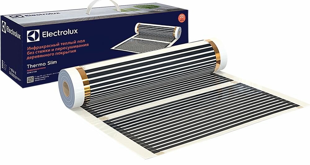 Electrolux (Электролюкс) модель тёплого пола, который способен осуществлять мягкий обогрев без пересушивания деревянных покрытий. Данный плёночный пол может монтироваться без стяжки и имеет минимальную толщину. Устройство отличается быстрым демонтажем и минимальным энергопотреблением. Не выделяет электромагнитных полей.