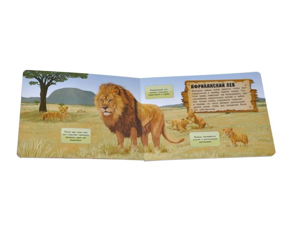 Покупала двухлетней девочке. Толстые картонные страницы. Не считая переплета, всего 3 листа. Непонятно, для какого возраста предназначено. Если для младшего школьного, как указано, - катастрофически мало информации, на каждого из четырех зверей по 5-9 предложений, всего 4 статейки, причем в 3 из них жестокая правда жизни. ("Самец льва часто убивает детенышей...", Самцы гепарда дерутся за самку до смерти...", "Щенки гиены иногда убивают самого слабого".) Зачем? Так что мы в 2 года только картинки посмотрим.