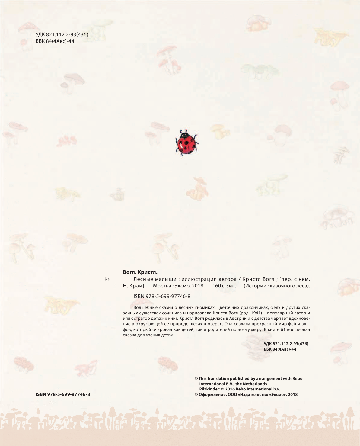 Волшебные сказки о лесных гномиках, цветочных дракончиках, феях и других сказочных существах сочинила и нарисовала Кристл Вогл (род. 1941) - популярный автор и иллюстратор детских книг. Кристл Вогл родилась в Австрии и с детства черпает вдохновение в окружающей её природе, лесах и озерах. Она создала прекрасный мир фей и эльфов, который очаровал как детей, так и родителей по всему миру. В книге 61 волшебная сказка для чтения детям.