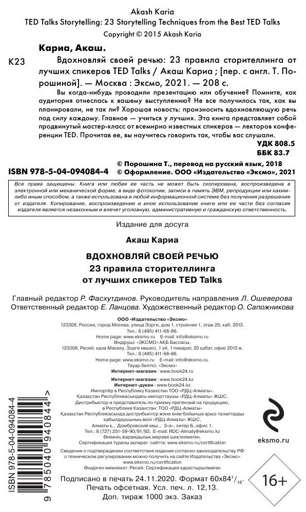 Вдохновляй своей речью. 23 инструмента сторителлинга от лучших спикеров TED Talks (Акаш Кариа); Эксмо, БОМБОРА, 2022