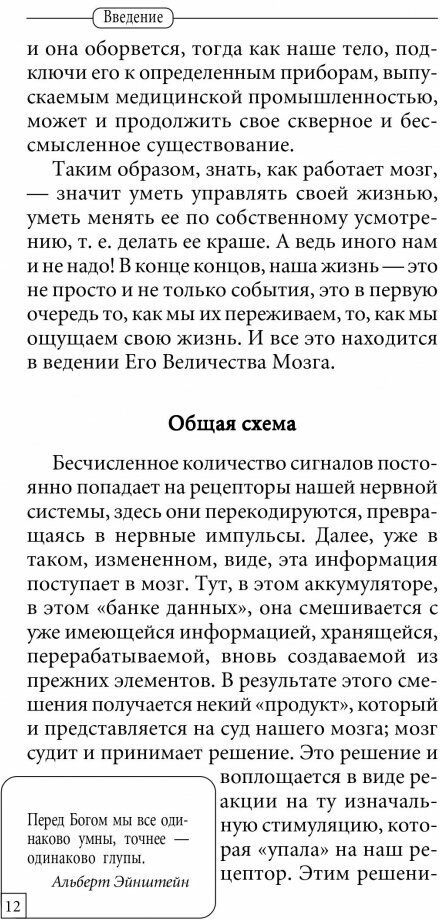 Книга, которая доступно и просто объясняет механизмы работы мозга на примере трёх концептов, описанных отечественными учёными — доминанта Ухтомского, знак-значение Выготского и условный рефлекс Павлова. Конечно, про мозг можно говорить и другими способами — объект это сложнейший, тут вам и полушария, и гетерохимическая теория, и обратная связь между мозгом и другими органами, и много-много что ещё...