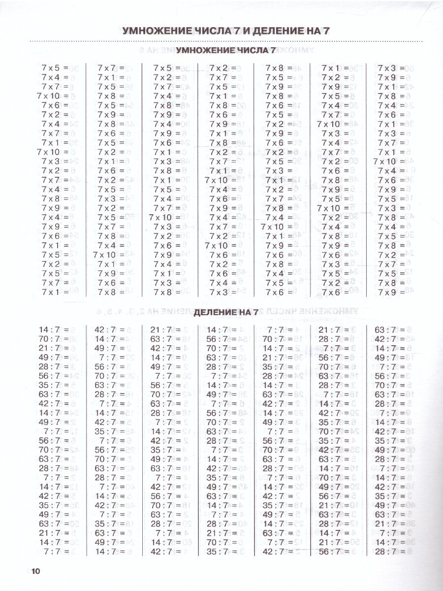 .Принцип построения пособия - от простого к сложному - от умножения числа 2 на число 2 до умножения числа 9, деления на число 9. Каждая страница книги посвящена какому-либо числу: первая работа - умножение числа, вторая - деление на это число. В конце книги даны примеры на повторение всей таблицы умножения и деление.