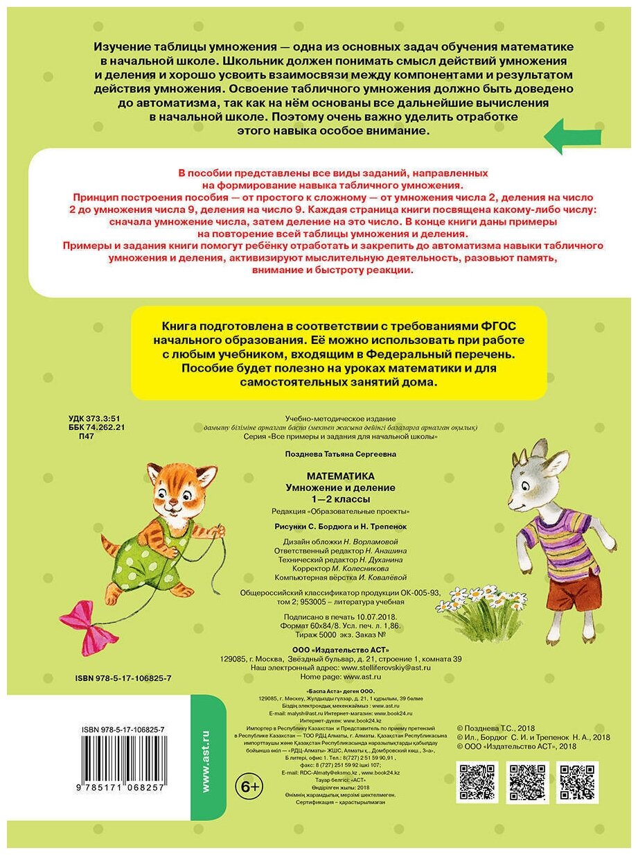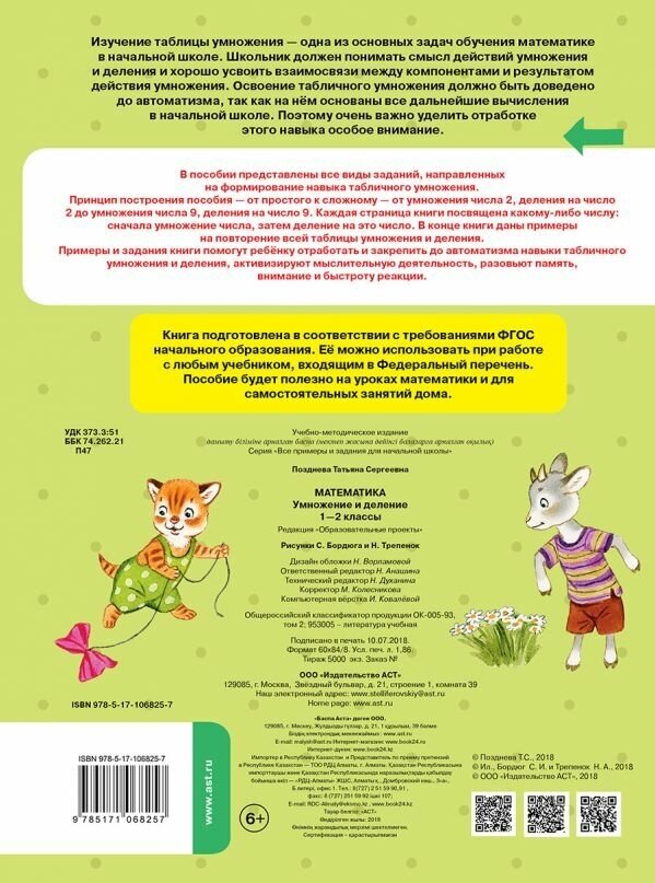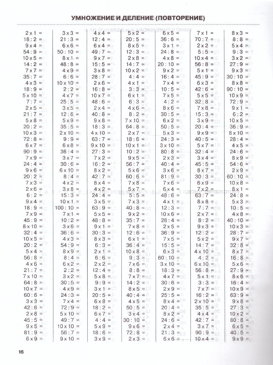 .Для достижения хороших результатов рекомендуем выполнять 2 работы в день. Примеры и задания книги помогут ребёнку отработать и закрепить до автоматизма навыки табличного умножения и деления, активизируют мыслительную деятельность, разовьют память, внимание и быстроту реакции.