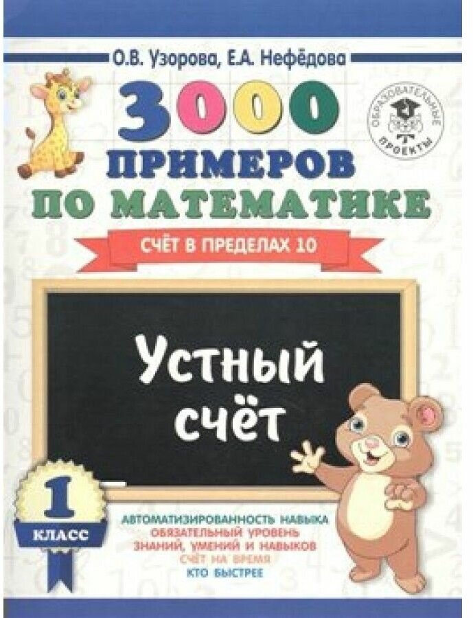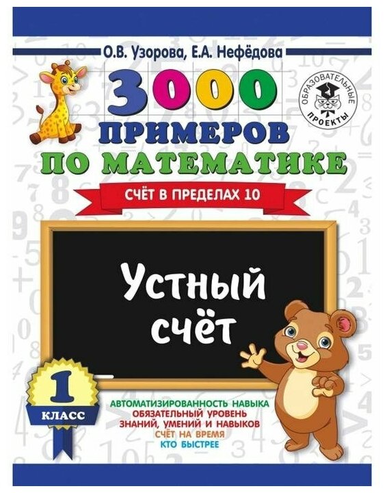 3000 примеров по математике. 1 класс. Устный счет. Счет в пределах 10 (Узорова Ольга Васильевна, Нефёдова Елена Алексеевна (соавтор), Нефёдова Елена Алексеевна); АСТ, 2018