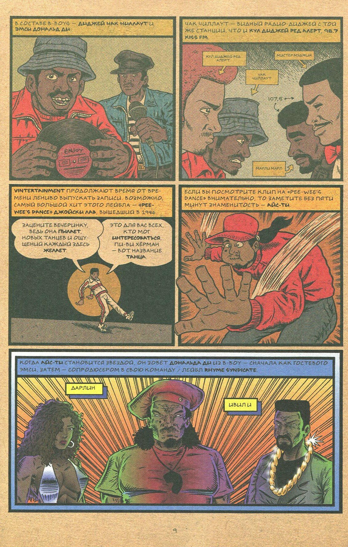 Просто безупречный комикс рассказывающий о семидесятых и восьмидесятых годах а именно а происхождение и становление такого раздела музыки как хип-хоп что вы собственно и сами поняли по названию. Отдельно хотелось бы отметить безупречное исполнение самого комикса такое ощущение что всё это время он пылился где там пауки и только сейчас вы его достали Ты довольно сложно объяснить но когда возьмете его в руки в память о чем я говорю автор Очень удачно выбрали палитру цветов такую же раньше использовали DC. Даже если Вы абсолютно не разбираетесь в хип-хопе то вы без труда поймёте абсолютно все отсылки шутки этого комикса Так а в конце все диалоги объяснены Мне кажется ты просто безупречна