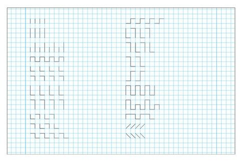 Рабочая тетрадь из серии Прописи по узорам из серии прописей Школа для дошколят. Дополнила ребенку таким заданием по клеточкам, чтобы ребенок научился считать по клеточкам и ориентировался в тетради в клетку. Техника написания - это образец, дальше ребенок самостоятельно пишет, без точек. Задания расположены от простого к сложному, что помогает ребенку освоить прописи. Минусом считаю все-таки то, что рабочая тетрадь меньшего формата (формат А5), чем другие прописи данной серии (формат А4). Думаю можно было сделать побольше пустых клеточек для написания. Сын рисует, хотя ему 5 лет, уже хорошо ориентируется по клеточкам.