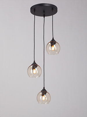 Светильник потолочный выполнен в форме подвеса с тремя округлыми плафонами, зафиксированными на разной высоте. Такой дизайн отлично сочетается с кирпичной кладкой, декоративной штукатуркой, простой, лаконичной мебелью. К потолку прибор крепится при помощи монтажной планки.