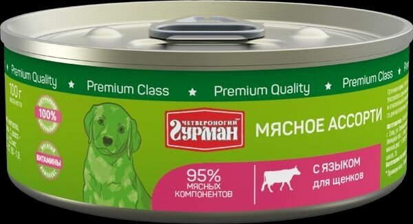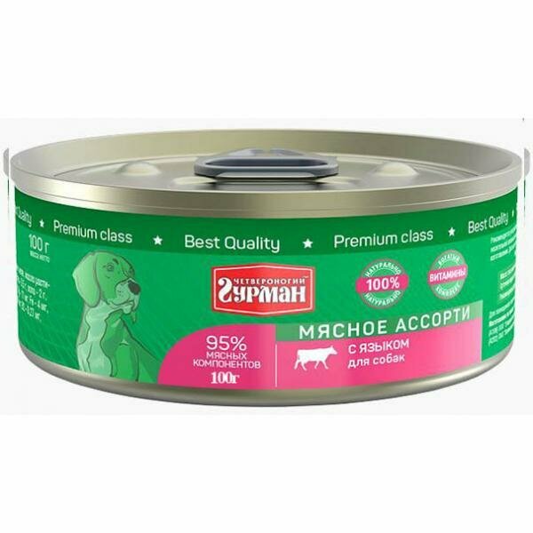Влажный корм Четвероногий гурман Мясное ассорти для взрослых собак язык 100г (103101012)