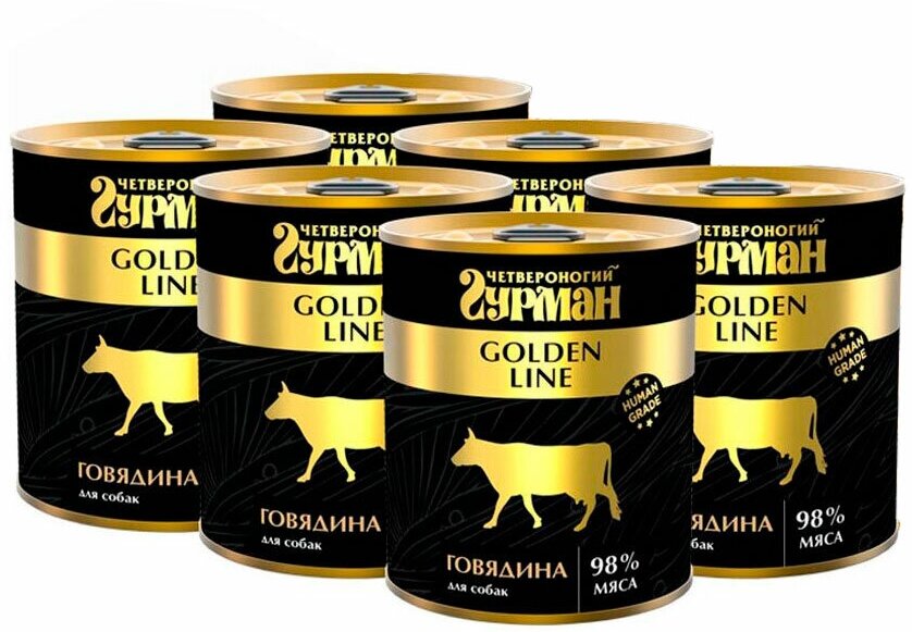 Влажный корм Четвероногий гурман Золотая линия для взрослых собак говядина натуральная в желе 500г (209112001)