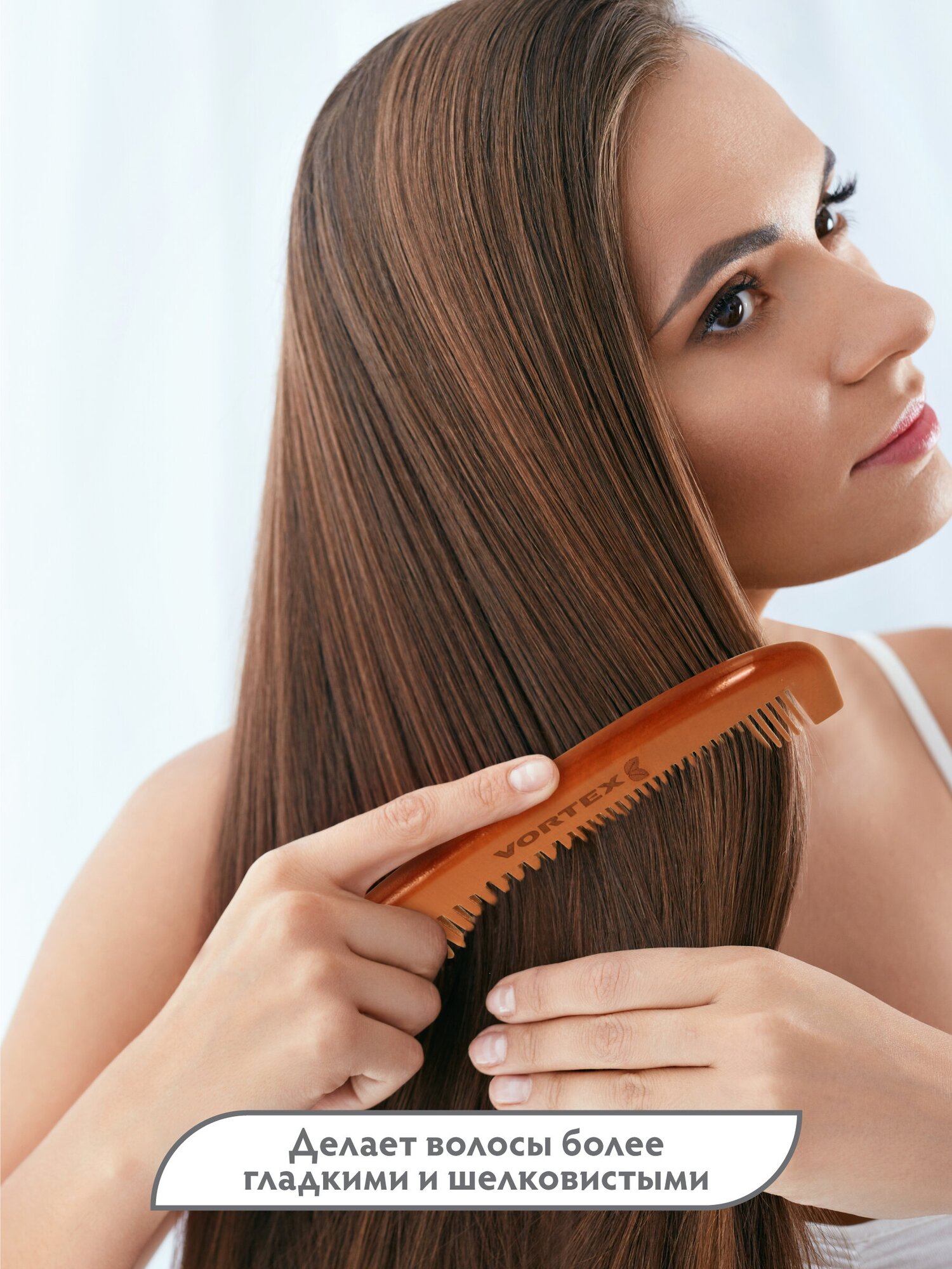 Расческа-гребень прекрасно подойдет для ежедневного использования. С его помощью не только легко расчесывать волосы, но и наносить маски и средства для ухода за волосами. Кроме того, деревянный гребень снимает статическое электричество, накопленное волосами. Гребень особенно удобен для использования после мытья головы.