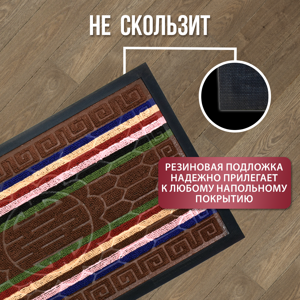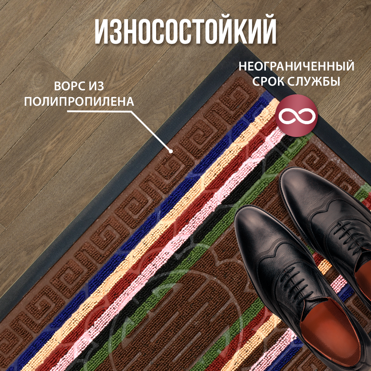 Предназначен для использования внутри и снаружи помещения. Очищает обувь от грязи и задерживает влагу при входе в помещение, не скользит.