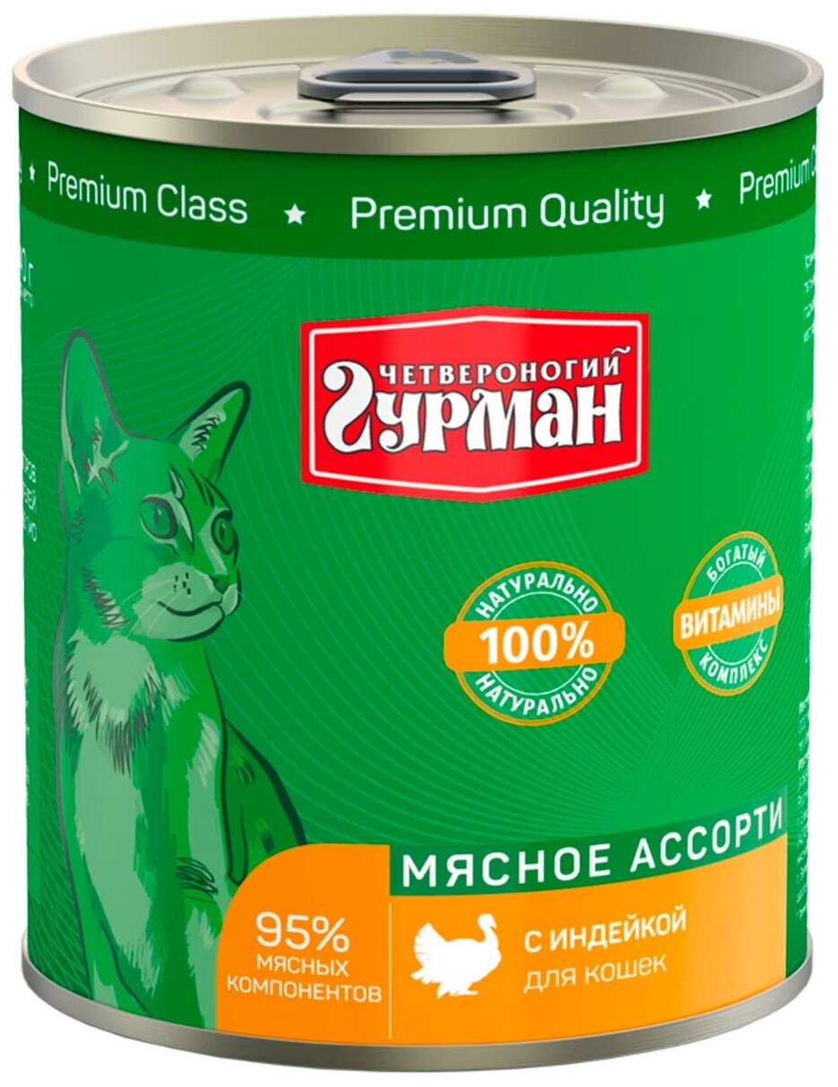 - Консервы для собак Четвероногий Гурман мясное ассорти с говядиной