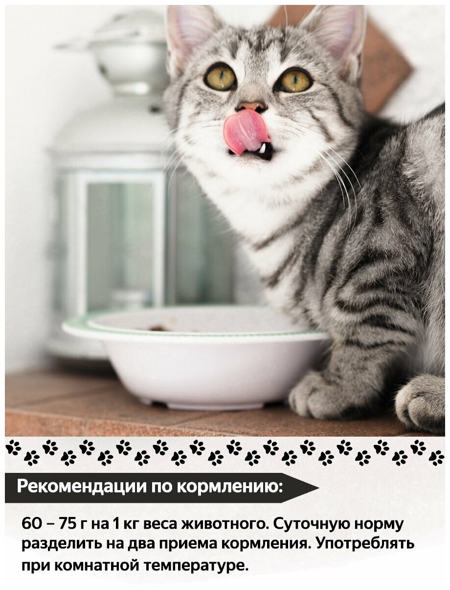 - Корм не содержит растительных белков, сои, ГМО, искусственных красителей и ароматизаторов.