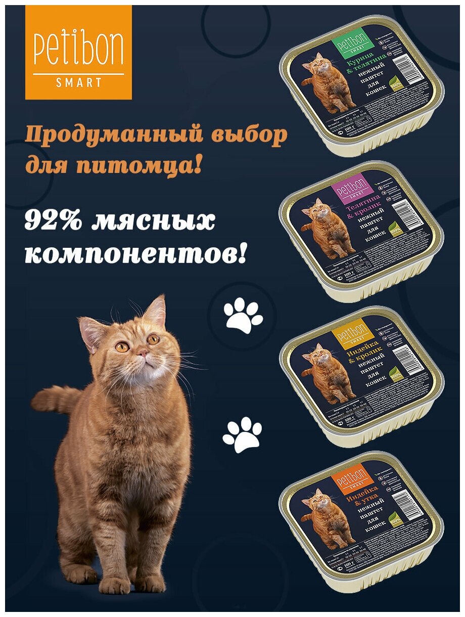Petibon Smart Паштет с индейкой и телятиной - это консервированный корм для взрослых кошек всех пород. Приготовлены из двух видов сочного мяса по фирменной рецептуре.