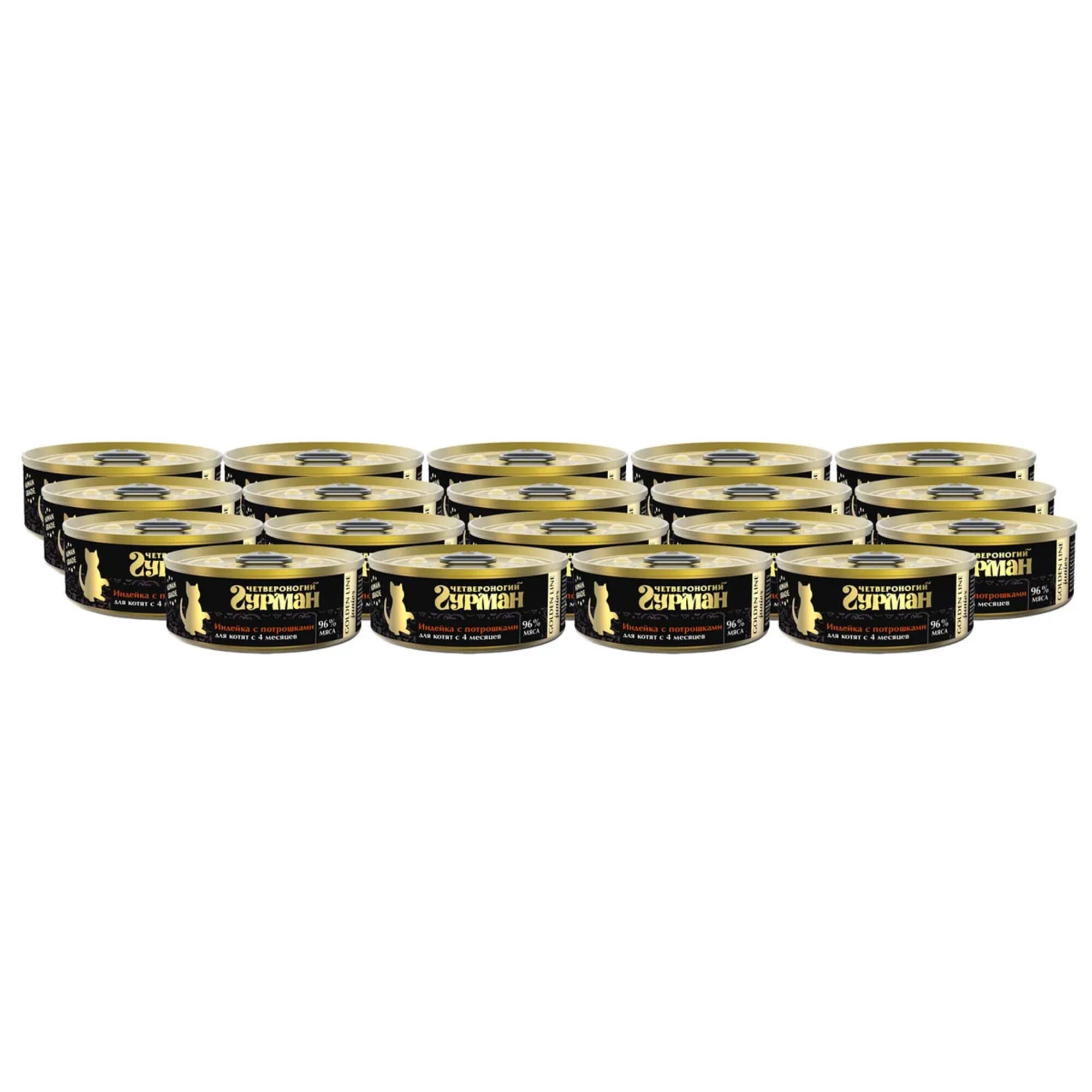 Консервы Золотая линия для Котят Индейка с потрошками в желе (цена за упаковку) - «Четвероногий гурман» Golden line - это корм суперпремиум класса, приготовленный из одного вида мяса без добавления субпродуктов и растительных компонентов. Открыв баночку, вы увидите крупно нарезанное сочное филе в натуральном желе. Golden line – это 98% настоящего мяса и 2% желе.