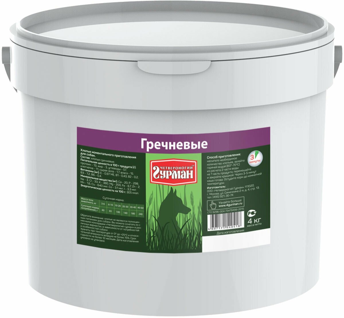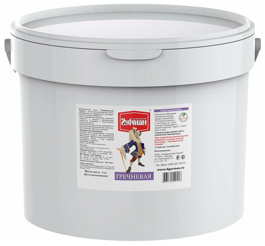 Сервис сравнения цен СкидкаГИД предлагает сравнить цены на товар «Моментальная каша Четвероногий гурман Гречка 4 кг (102140006)»