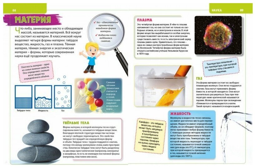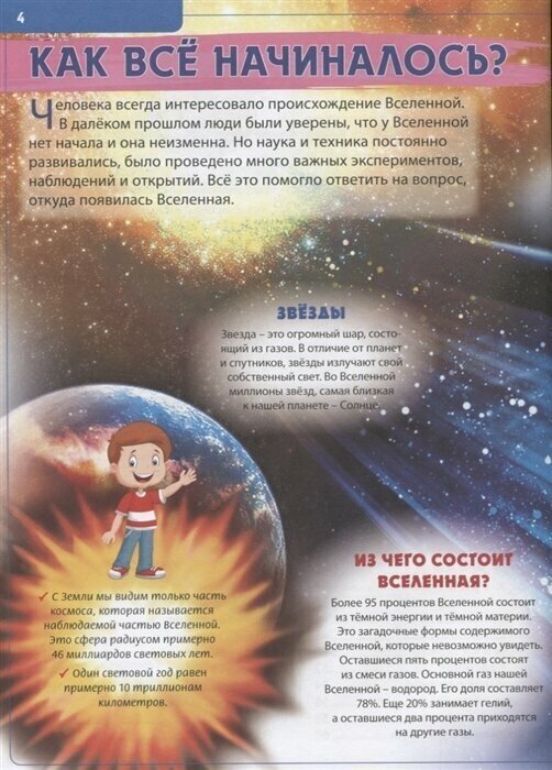 Знаешь ли ты, что такое чёрная дыра? Когда на нашей планете появился первый человек и кто изобрёл телевизор? Почему ты всегда падаешь на землю, а космонавты "летают" внутри космической станции? Какая птица умеет летать задом наперёд, и для чего ящерицам язык? Ответы на эти и многие другие вопросы ты найдёшь в нашей иллюстрированной энциклопедии!
