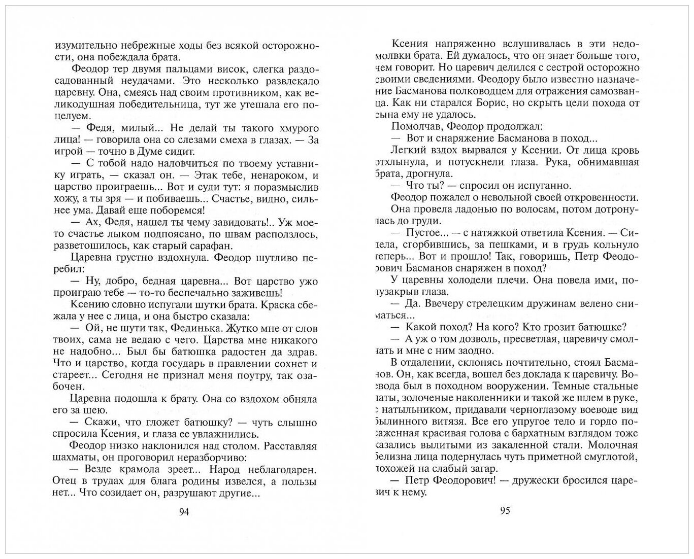 В романе о Смуте мне для пребольшого счастья достаточно "веселого чернеца" Отрепьева, "черного воеводы" Басманова и "печальной царевны" Ксении . Я недавно размышляла, как бы повернулась история, если бы Басманов выбрал невесту, а не самозваного царя? Если бы Ксения влюбилась не в принца датского и не в Лжедмитрия, а в Петра? Как бы он - опасно-красивый, храбрый, верный - повел ее к Самозванцу? Терзался бы душевно или оказался редкостным гадом?.. Думала, книга попадет в настроение, но зря я губу раскатала. Произведение написано в романтическом стиле XIX в., местами пафосно и неправдоподобно, где-то поверхностно, некоторые исторические личности перемешаны, а характеры, на мой взгляд, не всегда верны.